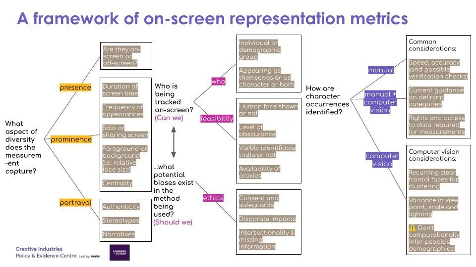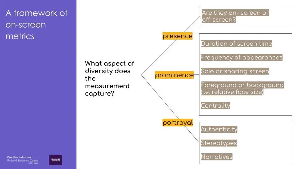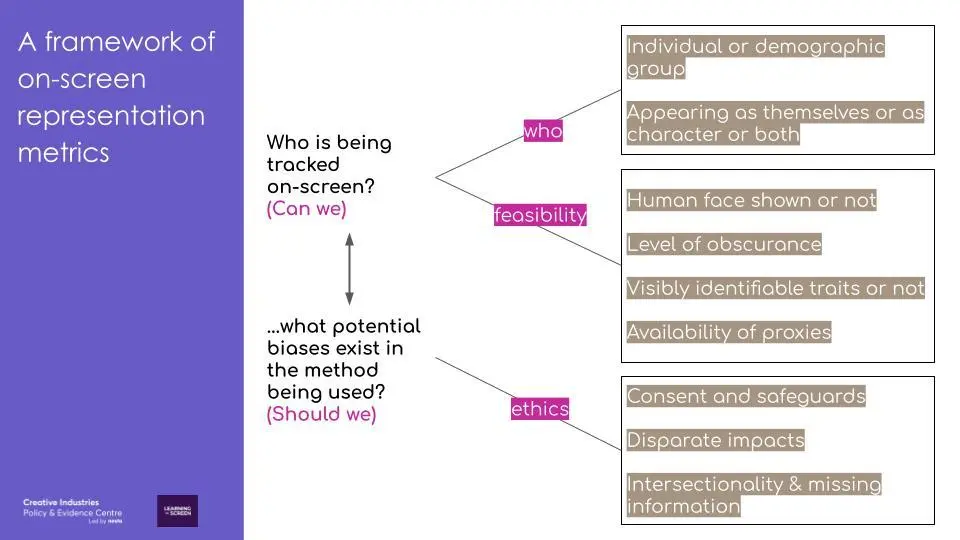 The framework is aimed at anyone who is interested in measuring on-screen representation, from media regulators to broadcasters, researchers and film/TV fans. It asks three key questions about the method being used to measure representation.
